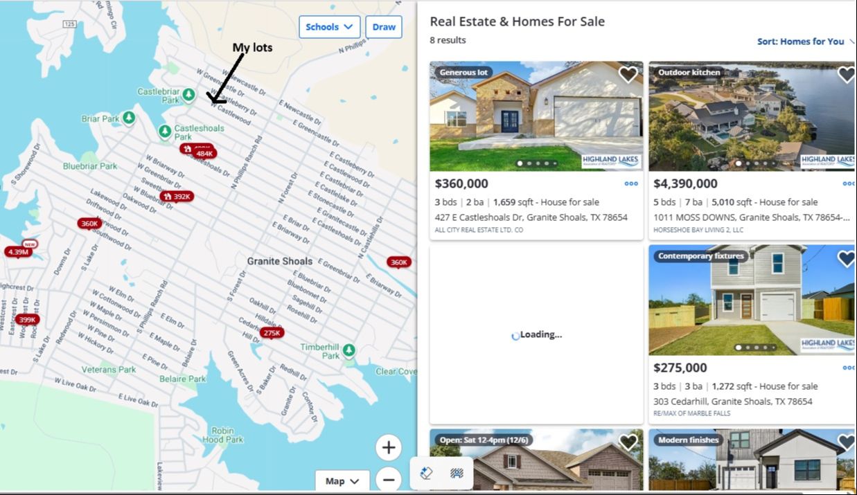 50 x 200 vacant lots, Two lots 50 x 100 back to back. Marble Falls, Tx (Granite Shoals area) Walking distance to Lake LBJ . No HOA.